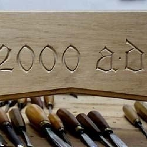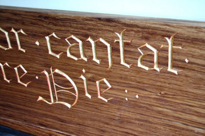 Lettering onMemorial (carved by Philipine Sowerby) Oak